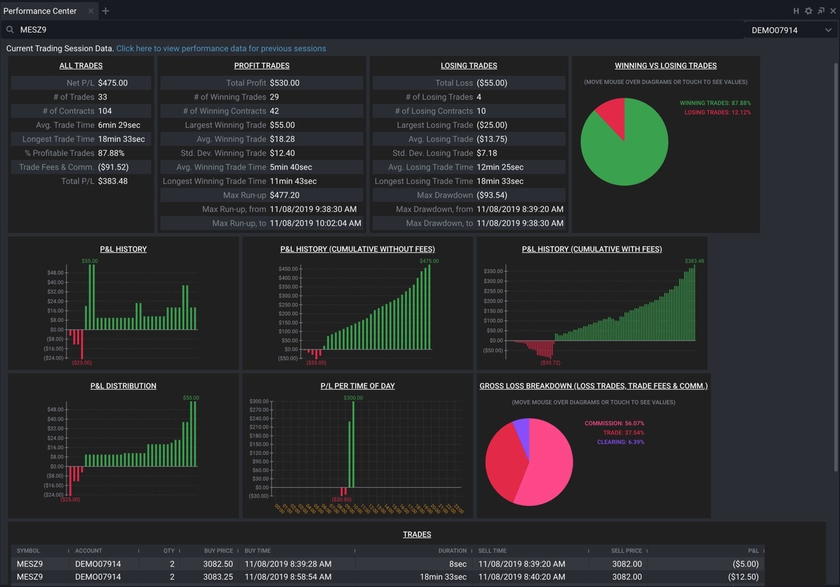 Know where you stand using the Tradovate Performance Center. Monitor account performance based on real-time account information. Customize the charts and tables to fit your personal trading preferences on any device.